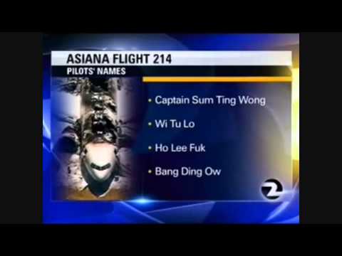 You gotta wonder why the station didn't phonetically pronounce the names before sending them to the anchor's teleprompter. My guess is that in their rush to be the first media outlet to break the news about the pilots' names, they didn't bother to check their facts. To be fair, they did call the National Transportation Safety Board (NTSB) to check the spelling of the names, but the person they reached was a summer volunteer intern who wasn't in a position to confirm the names and KTVU didn't check to see what his/her position was. Still, all they had to do was say the names out loud, for goodness sake. The original broadcast appears below: